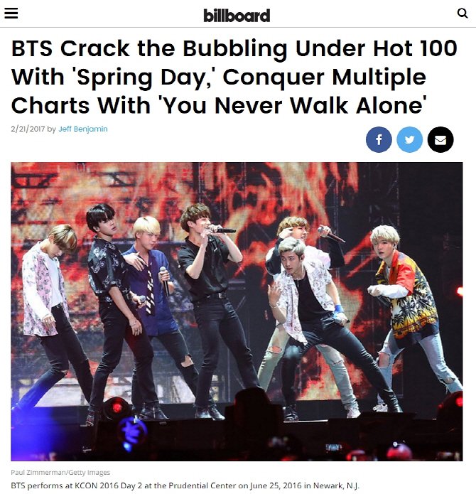 이어 빌보드는 “방탄소년단의 ‘봄날’은 거의 모든 가사가 한국어이며 미국에서의 프로모션이 전혀 이루어지지 않은 상태였고 특히나 쟁쟁한 경쟁이 이뤄지는 ‘2017 그래미 어워즈’ 주간에 발매되었음은 물론, 일요일(현지시간)에 공개되면서 다른 곡들에 비해 데이터 취합 기간이 짧았음에도 대기록을 썼다”고 설명했다. 또한 “방탄소년단의 이러한 결실은 급성장하고 있는 K팝 신의 희망이자 좋은 선례가 되고 있다. 한국 아티스트가 미국 사회에서 지속적으로 성과를 낼 수 있다는 가능성을 시사한다”며 극찬을 아끼지 않았다.
