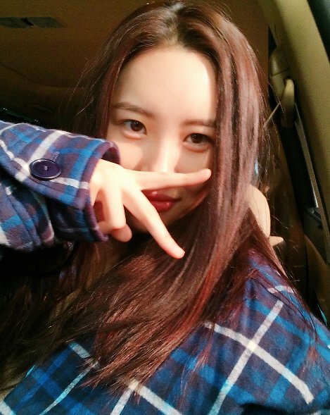 이 사진에는 선미가 오른쪽 손으로 브이를 그리고 있다. 그의 손톱에는 매니큐어가 칠해지지 않았다.