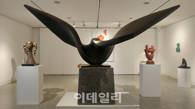 | | 김정숙의 ‘비상’(1986). 브론즈를 소재로 새의 날개짓을 역동적으로 형상화한 반추상 작품. 한국여류조각가회 1대 회장을 지낸 김 작가는 유독 새의 날개 이미지를 좋아했다고 전해진다(사진=오현주 문화전문기자). |