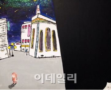 그때 그린 그림이 ‘방황’이다. 캔버스를 반으로 갈라서 오른쪽은 검게 칠했다. 그리고 나머지 왼쪽에는 별이 빛나는 밤의 도시를 묘사했다. 인적이 끊긴 빌딩 사이에는 오로지 아이 한 명이 외로이 서 있다. 그 아이는 물론 솔비 자신이었을 것이다.