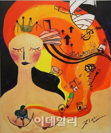 [이데일리 김인구 기자] 올해 초 서울 중구 수하동 미래에셋증권 센터원빌딩에서 열린 ‘프로 보노’ 자선전시회에서 가수 솔비(29)의 그림을 처음 접했다. ‘신데렐라의 뇌구조’라는 제목이었다. 소재나 색감이 독특했다. 아마추어답지 않은 ‘포스’가 전해졌다. 전시장을 찾은 관객들도 솔비의 그림 앞에서 한참 동안 머물렀다. 일부는 고개를 끄덕이며 그림을 요모조모 뜯어봤다.