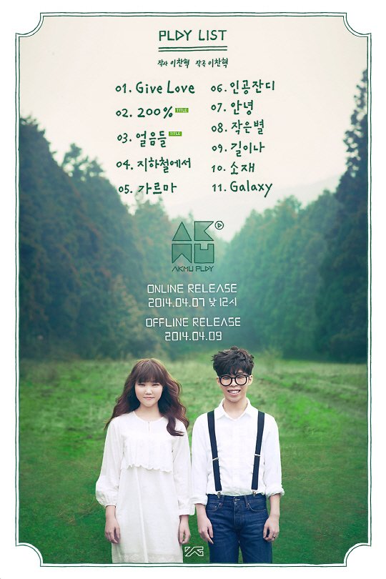 [이데일리 e뉴스 정시내 기자] 악동뮤지션(이찬혁, 이수현)이 오는 7일 데뷔앨범 ‘PLAY’ 발매에 앞서 트랙리스트를 전격 공개했다. 2일 오후 2시 YG엔터테인먼트(이하 YG) 공식블로그(www.yg-life.com)에는 푸른 숲을 배경으로 천진난만한 미소를 띤 악동뮤지션 이미지에 아기자기한 글씨체로 쓰인 트랙리스트가 게재됐다.