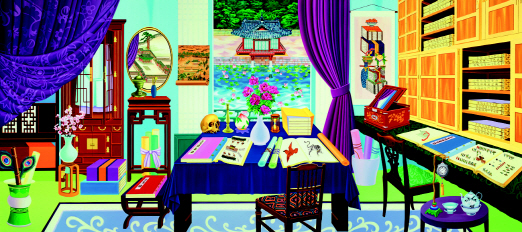 ‘규장각 안에서 부용정을 바라보다’에서도 김홍도의 ‘규장각도’와 ‘세발향로’, 외규장각의 풍경을 담은 ‘강화부 궁전도’ 등을 토대로 해골과 모래시계 등 작가가 오브제로 삼은 소품을 넣었다. 규장각은 정조가 창덕궁 후원에 지은 학술·정책연구기관으로 조선 후기의 개혁정치를 구상한 곳이다. 그러나 정조의 꿈은 이뤄지지 못했다. 그림을 보고 있자면 정조가 보았던 부용정의 풍경과 더불어 그의 마음도 저릿하게 전해온다. 12월 19일까지. 성인 3000원, 청소년 2000원. 02-736-4371.