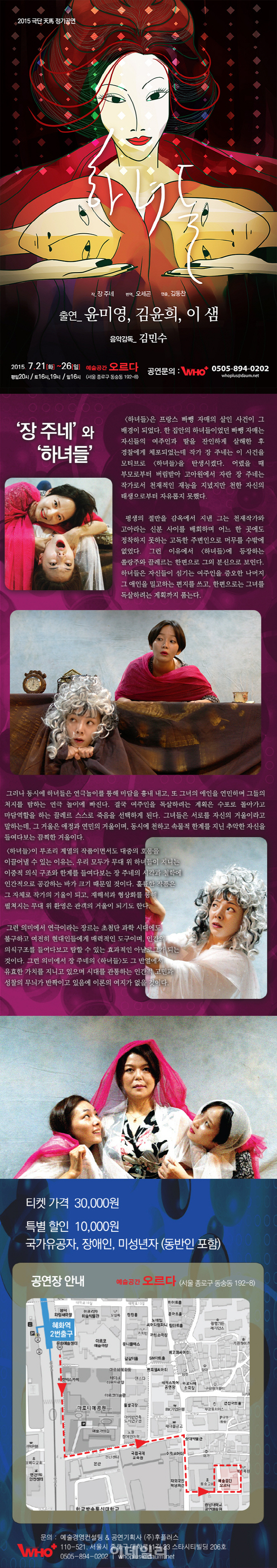 마담 역에는 배우 윤미영이, 쏠랑쥬와 끌레르는 각각 이샘과 김윤희가 연기한다. 음악감독은 김민수가 맡았다. 자유석이며 티켓 가격은 3만원. 0505-894-0202.