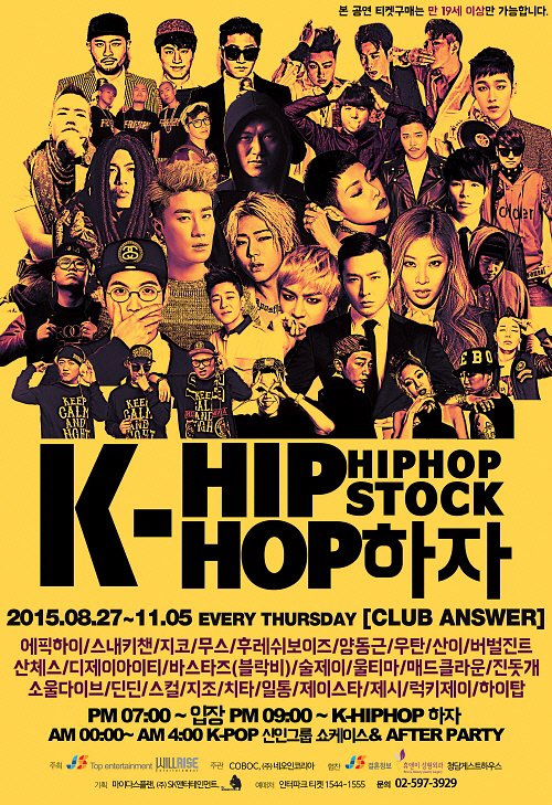 에픽하이, 스내키챈, 지코,무스, 후레쉬보이즈, YDG(양동근), 우탄, 산이, 버벌진트, 산체스, 디제이아이티, 블락비(유닛), 술제이, 울티마, 매드클라운, 진돗개, 소울다이브, 딘딘, 스컬, 지조, 치타, 일통, 제이스타, 제시, 하이탑, 럭키제이 등 대한민국 힙합 스타들과 EDM, 케이팝 스타들이 열정적인 라이브를 선보인다.
