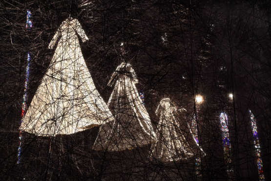 올해 베니스비엔날레 일본관의 대표작가였던 시오타 치하루의 ‘꿈 꾼 이후’는 여성 판타지의 대표적인 상징인 순백색의 드레스에 검은 실을 거미줄처럼 엮어 만든 설치작품. 검은 실로 뒤엉킨 하얀 드레스는 산만하면서도 갑갑하다. 여성이 받는 억압에 대한 은유다. 정은영 작가의 ‘소상팔경’은 ‘심청가’를 은유적으로 재연했다. 정 작가는 심청이 여성으로서 처한 가혹한 상황과 아버지를 위해 소신공양을 당연시하는 전통적 윤리의식의 폭력성에 주목하고 이를 비틀어 영상 등 설치작품에 담았다.