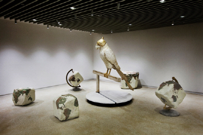 ‘새들의 나라’라는 주제로 열리는 배영환 작가의 전시는 4채널 비디오 설치 작품인 ‘추상동사 - 캔 유 리멤버?’(Can you remember?)를 비롯해 앵무새와 사각 지구본을 소재로 한 ‘말, 생각.뜻’ 등 신작이 나왔다.