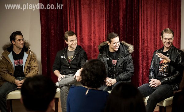이날 참석한 배우들은 그랜트 앨미럴(Grant Almirall), 다니엘 부이(Daniel Buys), 케네스 메이어(Kenneth meyer), 임마누엘 커스티스(Emmanuel Castis) 등이다. 이들은 미국의 '원조 아이돌'로 일컬어지는 포시즌스의 멤버 네 명을 각각 맡아 원캐스트로 최초의 내한공연을 이끌어가고 있다. 바쁜 공연일정을 소화하느라 아직 한국을 제대로 돌아보지 못했다는 이들에게 관객들이 궁금한 점을 물었다.