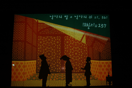 이 연극은 일종의 그림자극이다. 막 뒤의 인물과 몇몇 대소도구들을 제외하면 영상 및 영상배경이 대부분을 차지하는 영화 같은 그림자극이다.