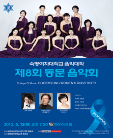 숙명여대 음악인들이 선사하는 아름답고 건강한 화합의 하모니를 5월의 꽃향기와 함께 가슴 깊이 담으시어 오랫동안 기억해주시길 바랍니다.