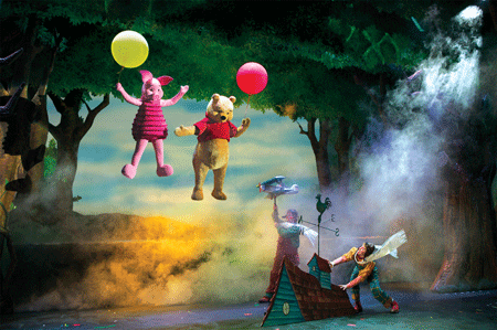 허니펠퍼가 객석으로 내려와 여러분과 함께 신나는 놀이와 공굴리기도 해요, 아카데미를 수상한 디즈니 곡들, 위니 더 푸~ 위니 더 푸~ 디즈니 친구들과 함께하는 신나는 노래와 율동 푸와 악수악수~