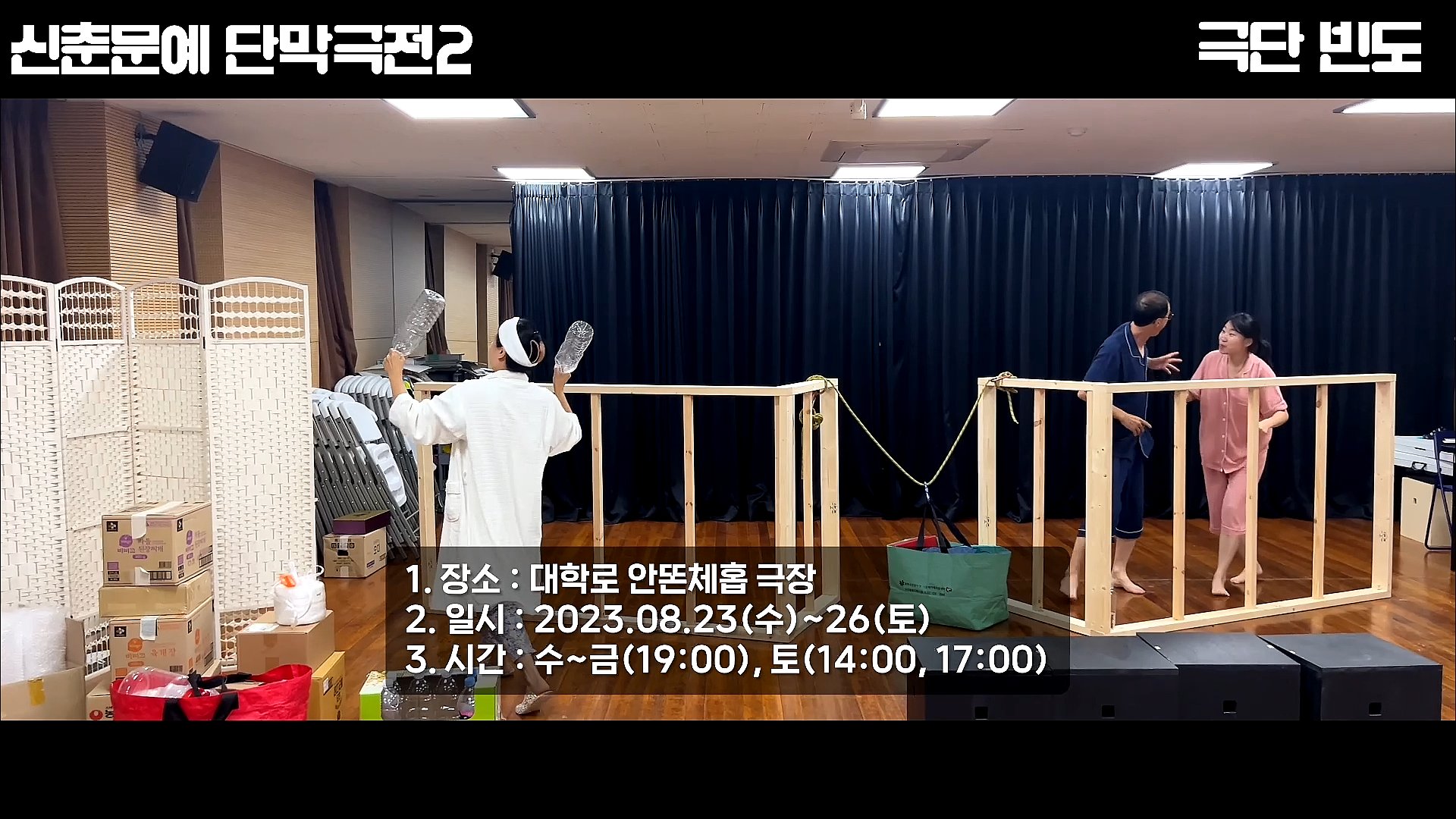 하지만 힘든 시기에도 이곳에 모인 관객 여러분들이 잠시나마 웃으며 위로 받을 수 있도록 극단 빈도는 스스로를 뜨겁게 담금질하였습니다.