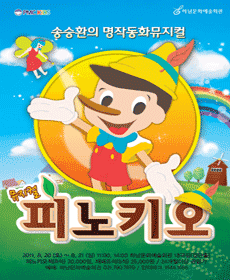 원작은 이태리 작가 카를로 콜로디가 1883년에 발표한 ‘피노키오의 모험’ 입니다. 피노키오가 모험을 한다고요? 흔히들 피노키오 하면 거짓말 하면 길어지는 코만 떠올리시나요? 피노키오는 사실 흥미진진한 모험을 즐기는 통 큰 나무인형입니다. 학교 가는 길에 나쁜 친구들에게 속아 대형 서커스단에서 곡예도 부리고, 할아버지를 찾기 위해 엄청난 고래 뱃 속에 들어가 탈출까지 하니 말입니다. 이렇듯 피노키오의 모험심을 뮤지컬 “피노키오”에서는 대형 와이드 영상과 마법의 특수효과로 그려 낼 예정입니다.
