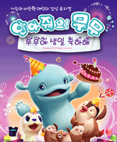 무대 위를 헤엄쳐 다니는 물고기와 대형 고래 무무 출연.