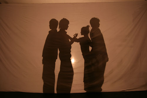 이것은 관객이나 배우들이 상상하거나 걱정하거나 추측하게 하며 보는 이로 하여금 보는 사람의 입장에 따라 과장되게 생각하게 하기도 한다. 이러한 효과는 처음에 언급했던 4개의 눈초리의 느낌을 잘 살리기에 충분하다. 잔잔한 음악을 배경으로 깔고 숨소리와 호흡소리 등으로 묘한 느낌이 들도록 하고 그 위에 전화 목소리가 들리는 등 흰 천의 실루엣 효과와 더불어 관객의 호기심을 자극하며 극을 흥미롭게 이끌어간다.