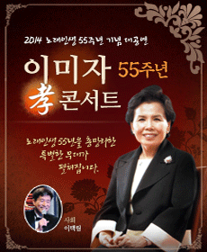 2014 「이미자 노래인생 55년 기념 대공연-in 인천」을 통해 <국민가수> 이미자의 노래 인생을 결산함은 물론, 사회/경제적 어려움에 직면한 우리 국민들의 가슴을 울릴 수 있는 감동적이고도, 동시에 새로운 희망을 다짐할 수 있는 소중한 기회에 여러분을 초대합니다.