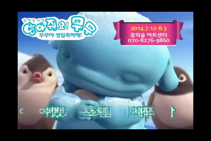 무대 위를 헤엄쳐 다니는 물고기와 대형 고래 무무 출연.