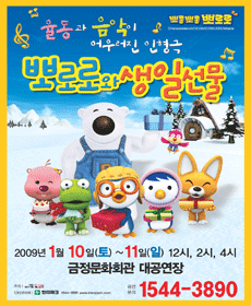 한 공연에 2작품을 볼 수 있는 1+1효과(30분짜리 2개 작품, 2개의 스토리로 유.아동의 집중도 향상) 기존 캐릭터 뮤지컬을 배우가 인형을 직접 쓰고 연기를 하는 것이 대부분이라 좀 더 세심한 동장에 한계가 있어 관객은 답답함을 느끼게 되어 이미 미국 브로드 웨이와 유럽에서는 캐릭터 인형을 이용한 공연에는 색다른 방법을 활용하고 있다. 바로 인형(높이 1.5M)을 들고 나오는 Open Puppet Show방식으로 기존의 캐릭터 뮤지컬, 일반 인형극이 가지고 있는 한계를 넘는 공연이 된다. 입체 다변형 무대장치와 그림자극 그리고 Miniature 무대를 통해 매 장면마다 새로운 무대미술로 보는 즐거움을 배가한다. 정극과 뮤지컬의 장점을 골라 드라마의 힘과 뮤지컬의 흥겨움을 동시에 창조하였다. 무대와 객석의 소통을 통해 어린이 자신도 극에 일조 했다는 뿌듯함으로 극장을 나설 수 있도록 한다. 기존의 뽀로로가 가지고 있는 순수성과, 작은 소동으로 만들어지는 친구들의 우정을 유지하는 동시에, 극장 무대라는 특성을 살려 TV에서 볼 수 없는 새로운 악당 캐릭터를 만들어 극적 긴장감과 활력 넘치는 액션장면등을 추가해 진보하는 뽀로로의 다양성 추구.